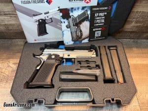 Fusion Firearms XP PRO in hard chrome finish. This was taken in on trade and is still in new/unfired condition. The (2) unbranded Glock 17rd mags were swapped out for (2) Magpul 17rd magazines. Comes with all factory included accessories, optic mounts, tools, paperwork, etc.